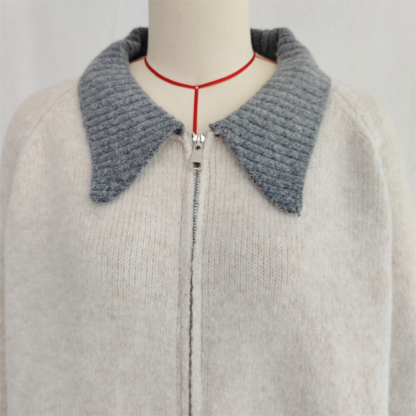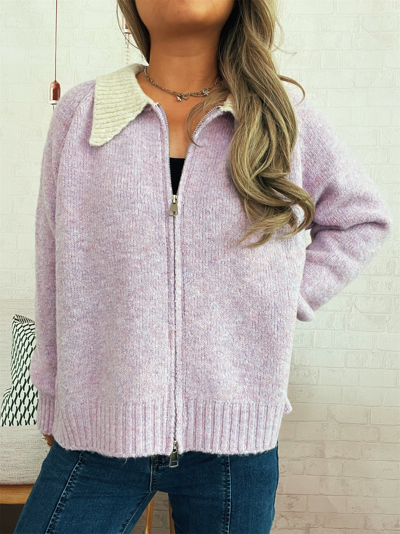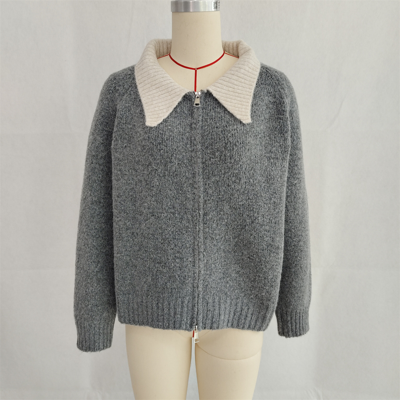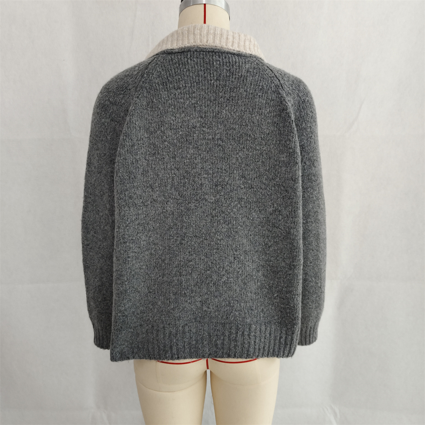 Cute Doll Collar Contrast Color Long Sleeves Zipper Casual Sweater