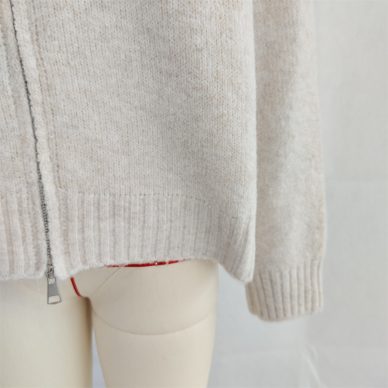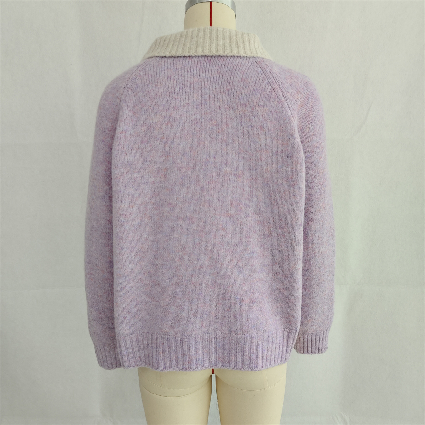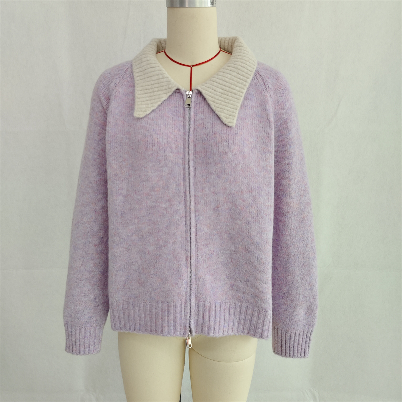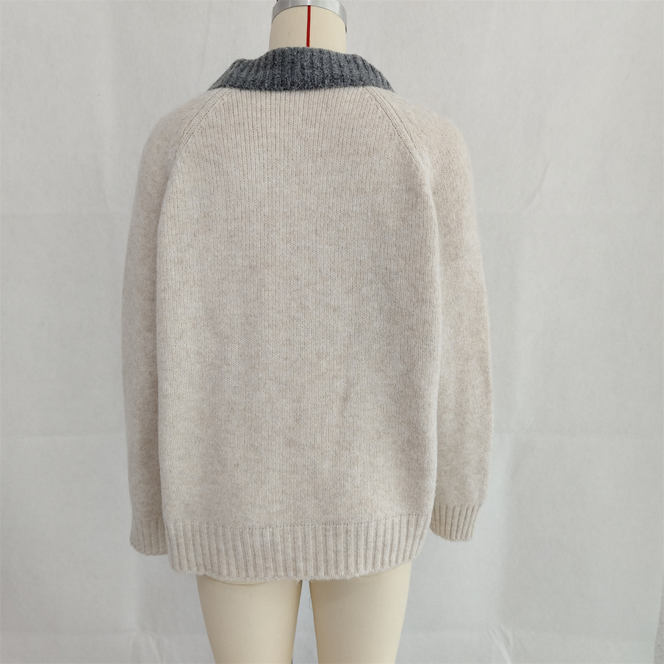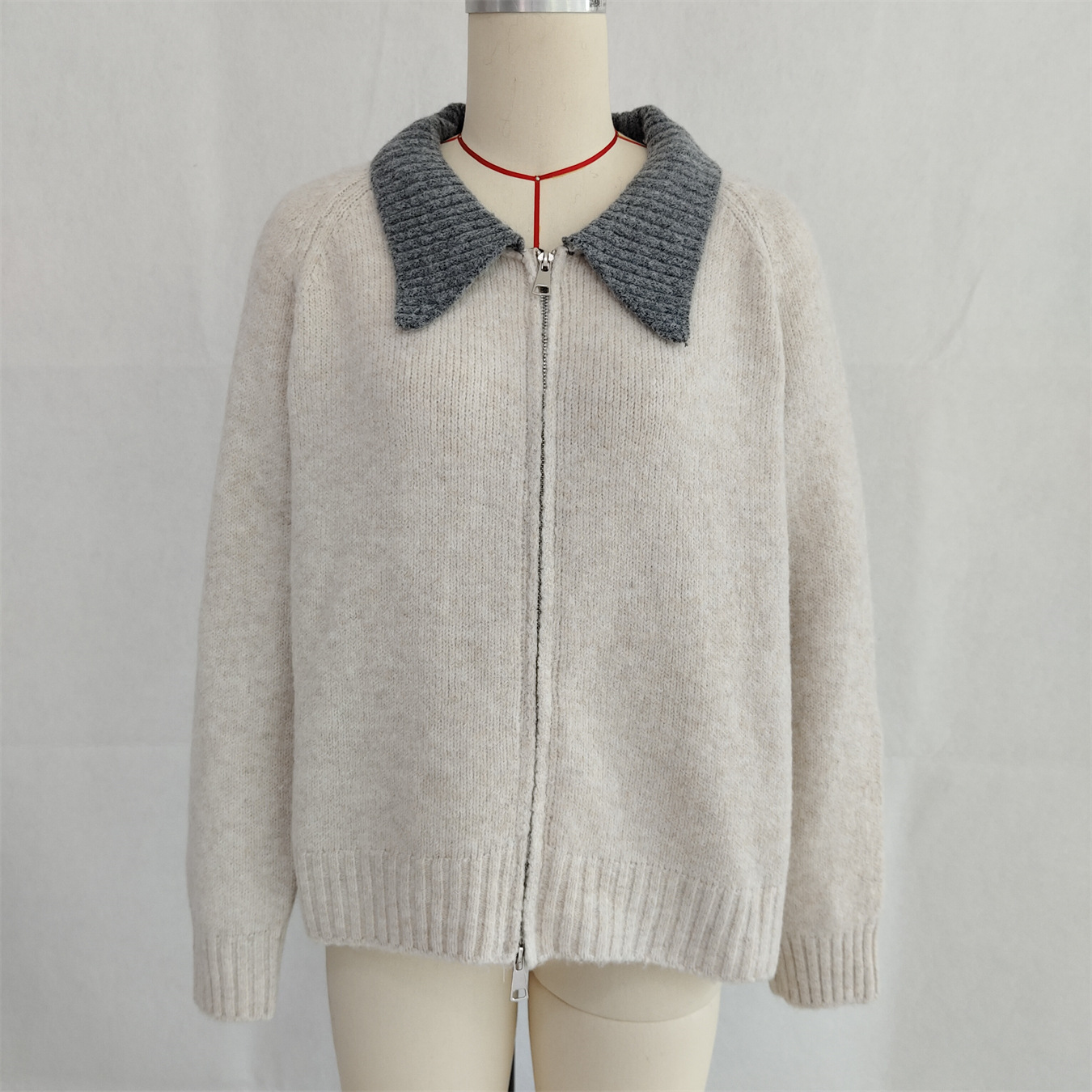 Cute Doll Collar Contrast Color Long Sleeves Zipper Casual Sweater