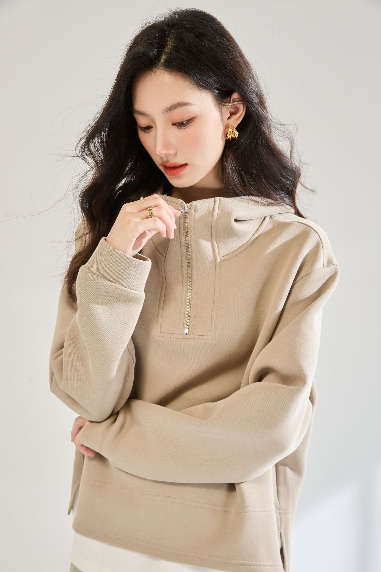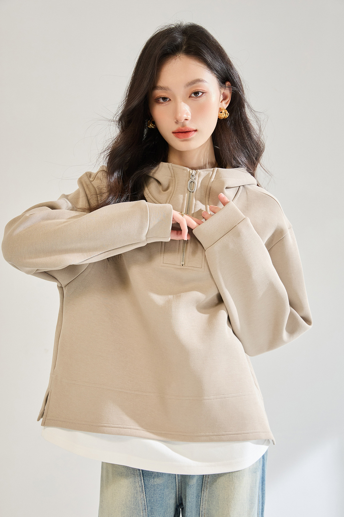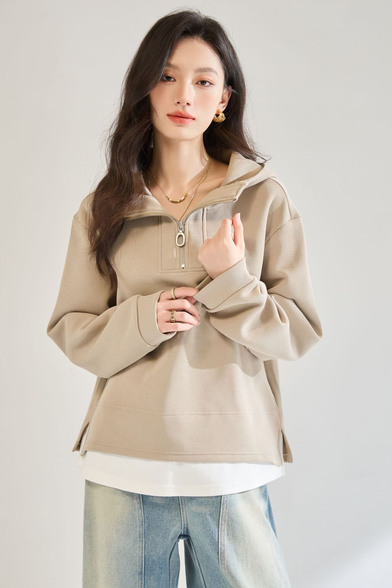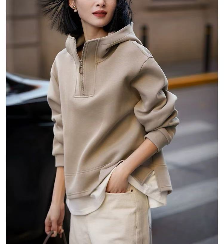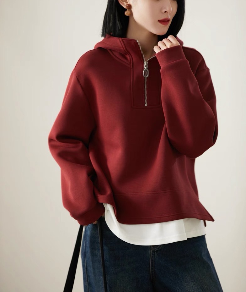 Fake Two-piece Air Layer Casual Half Loose Zip Top